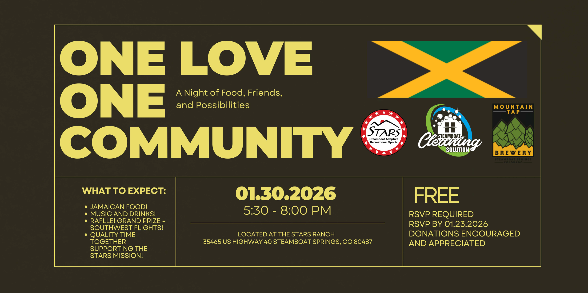 Come enjoy a casual evening with friends filled with music, delicious authentic Jamaican food, and supporting the STARS mission! RSVPs are REQUIRED! Please RSVP by January 23, 2026.